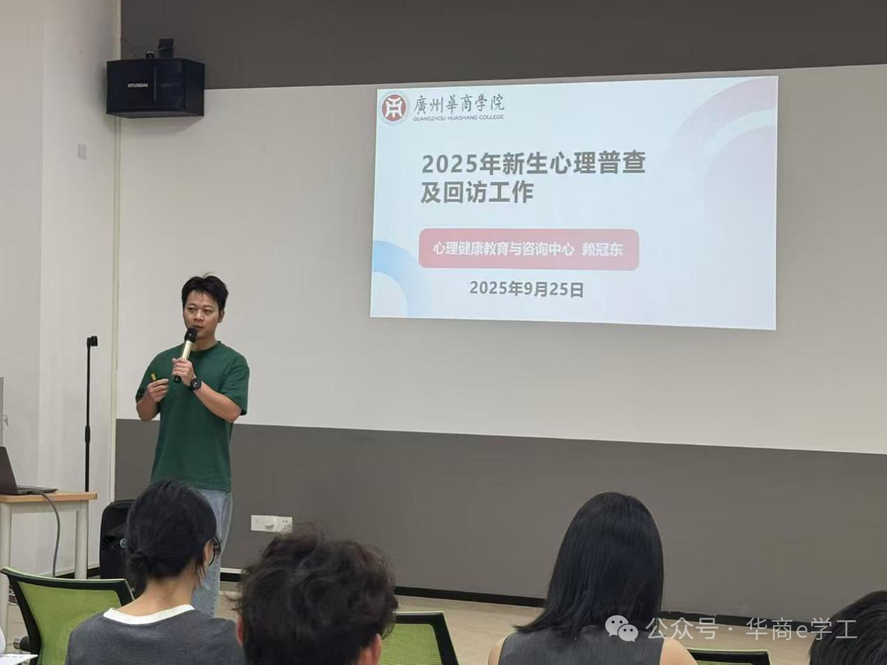 2025年9月25日,学生处心理健康教育与咨询中心举办2025年新生辅导员心理普查及回访工作培训,本次培训广州校区在厚德楼B111心康中心团辅室开展,肇庆校区在6号楼103心康中心团辅室开展,分别由心康中心吴连宁老师和赖冠东老师担任培训主讲人。心康中心李湘主任、肇庆校区学生工作办公室古文胜副主任、心康中心全体专职老师和新生辅导员参与本次培训。