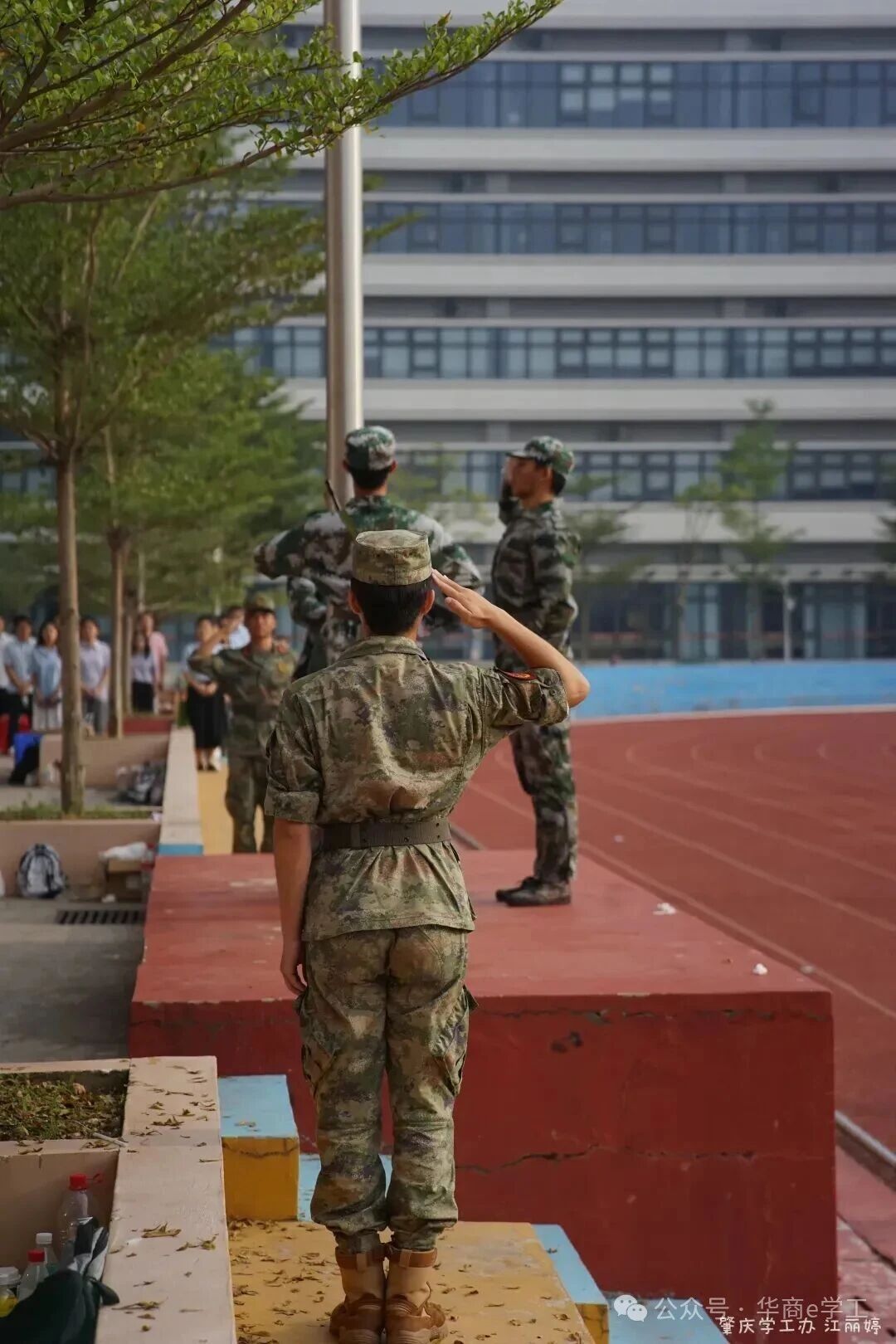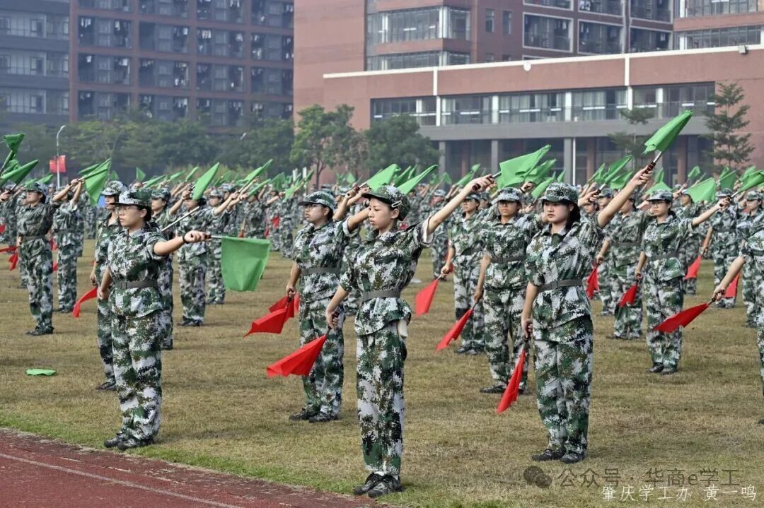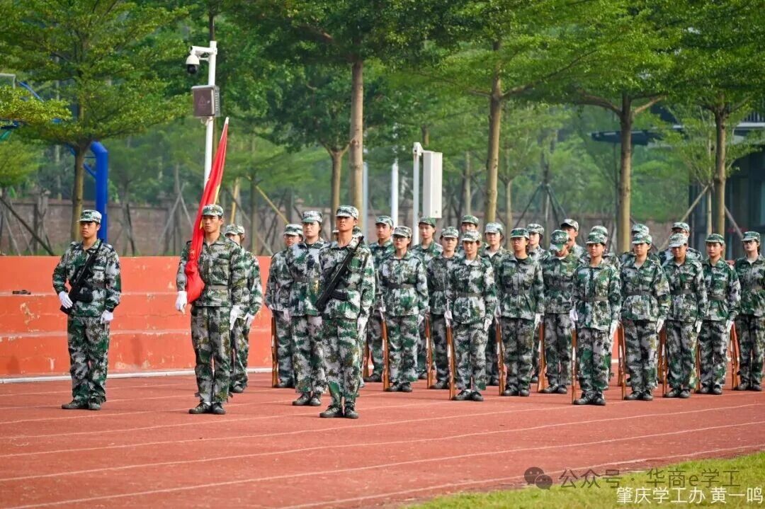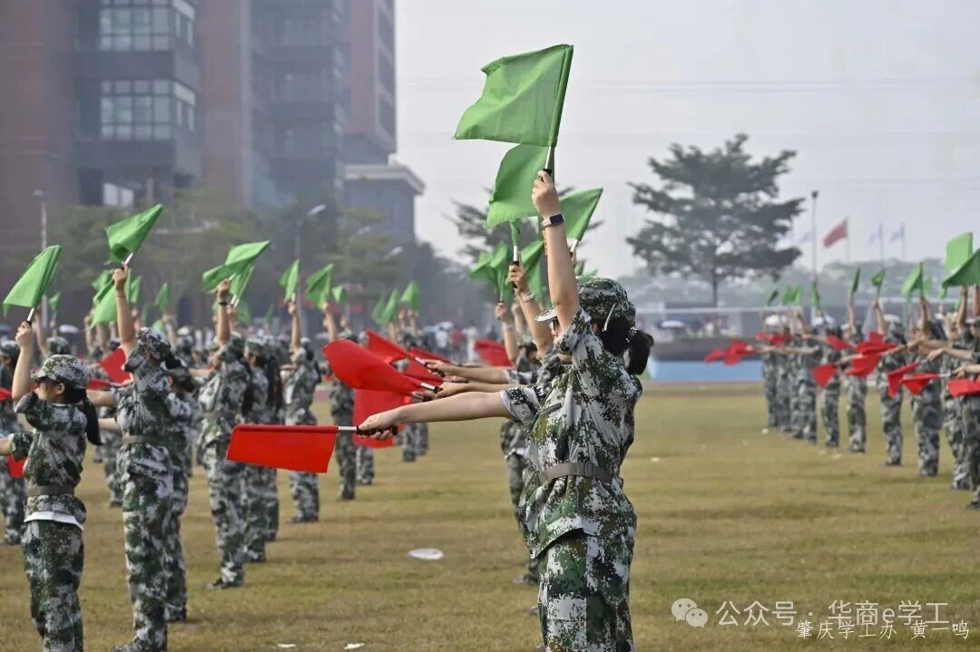 清晨7点,全体新生齐聚田径场,大会在庄严的升旗仪式中拉开帷幕,全体师生高唱国歌。这一刻,爱国情怀在心中激荡,华商新生学子以青春之名,向伟大祖国献上最崇高的敬意与祝福。