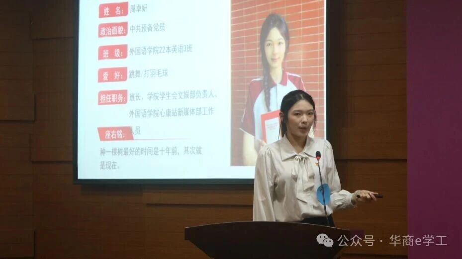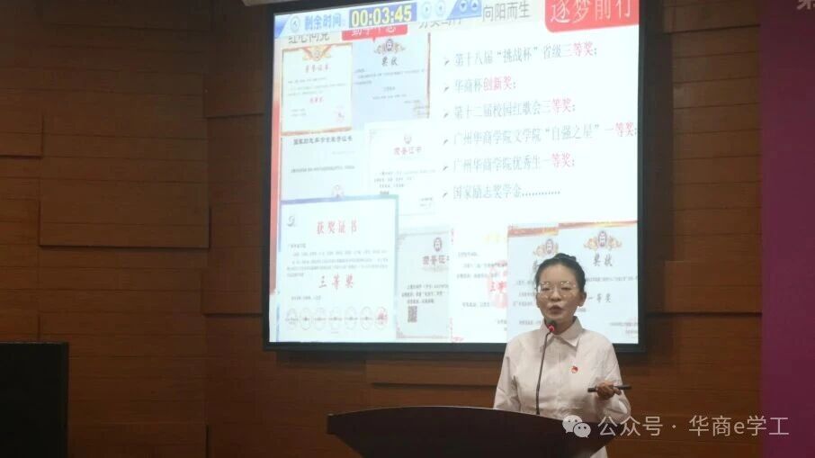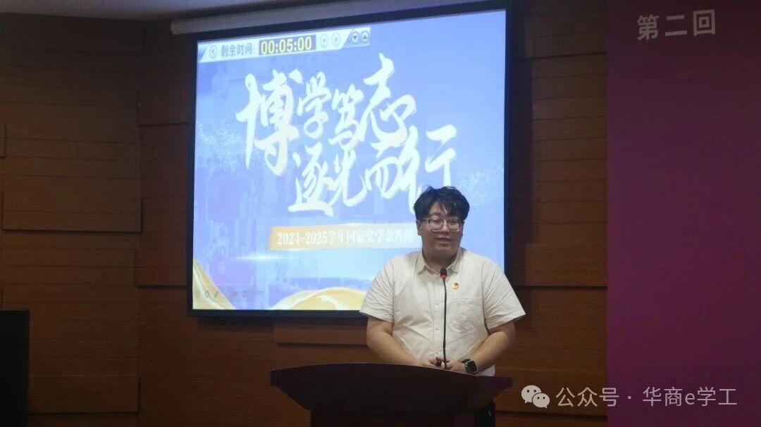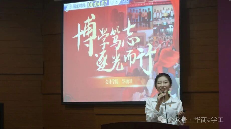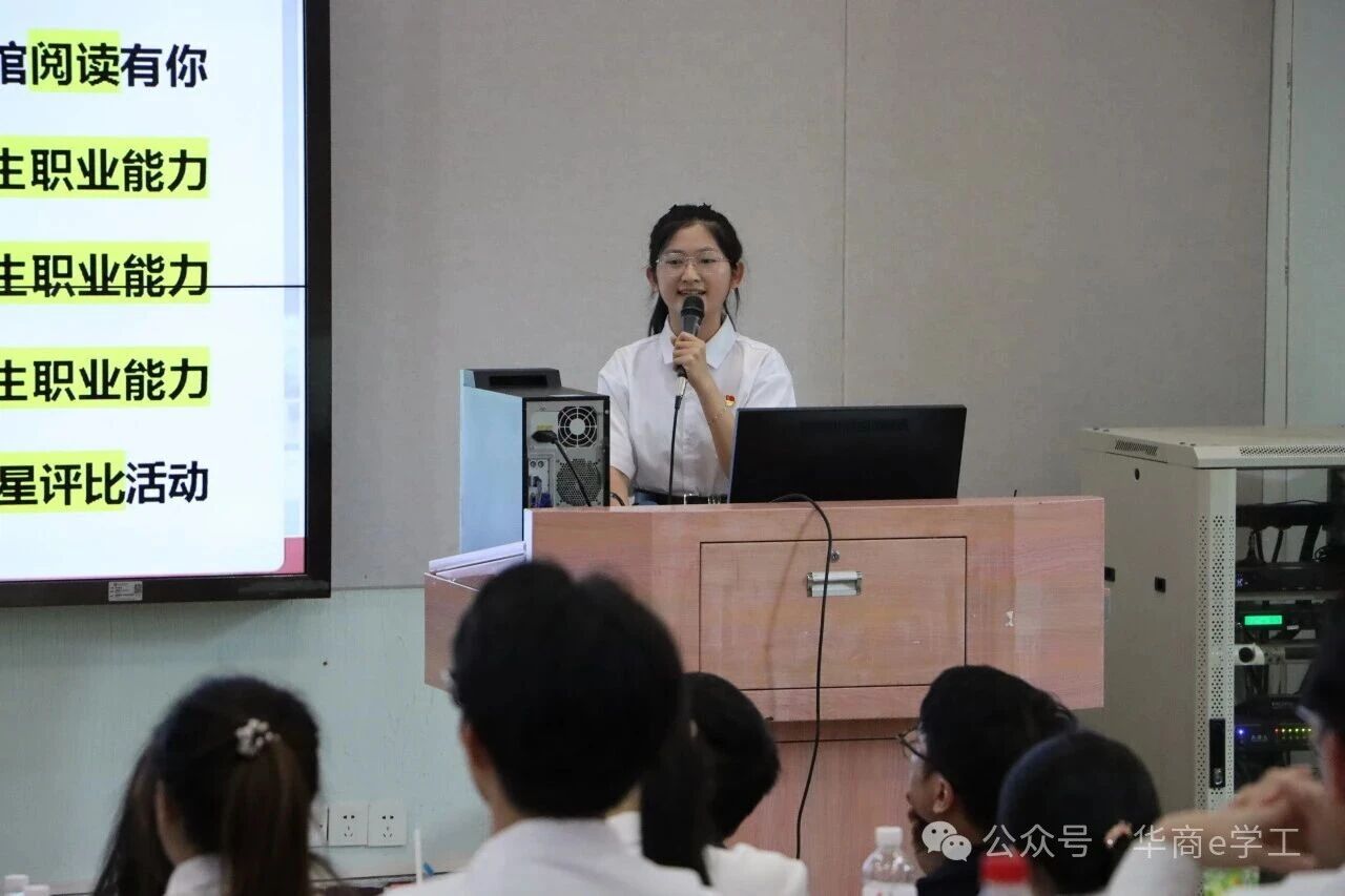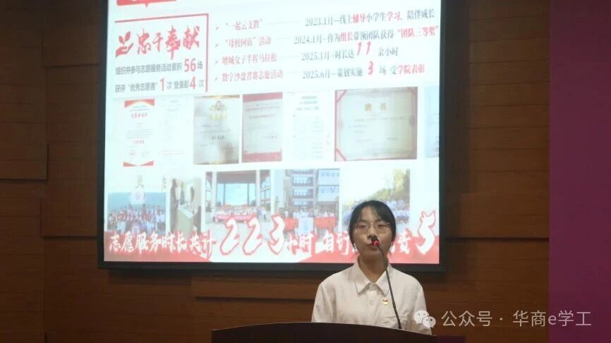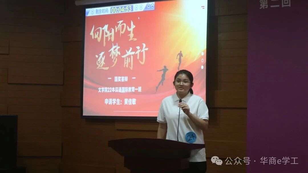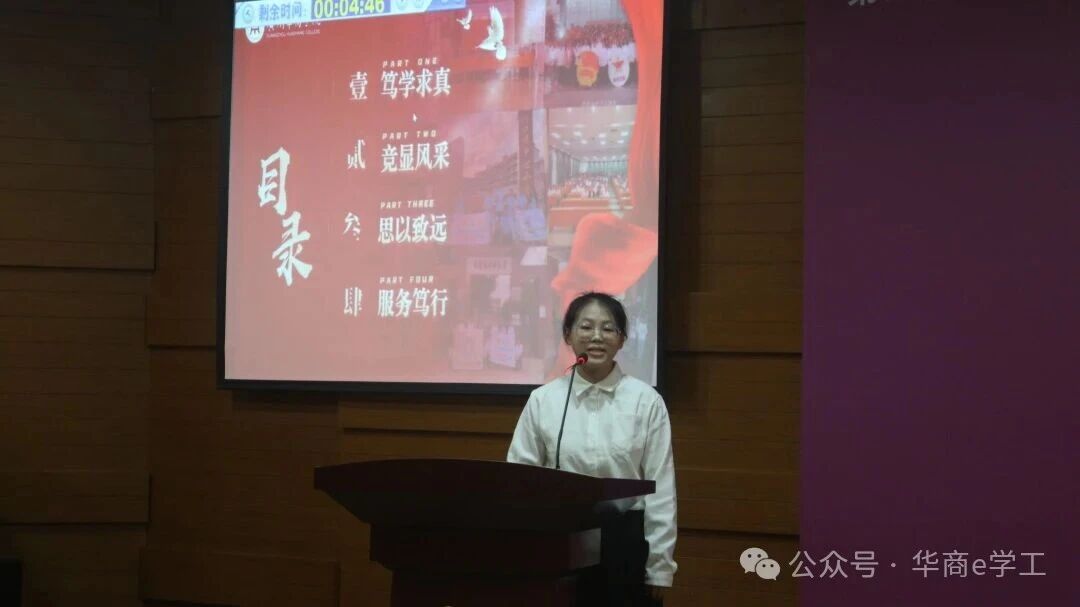 随后,竞选环节拉开帷幕。候选人依次登台,借助精心准备的演示材料,在演讲与答辩中,生动展现了他们在学业科研、社会实践、志愿服务等领域的优异成绩与全面发展的个人风采。他们或慷慨激昂,或沉着冷静,用真挚的语言讲述了在校期间的成长与收获。在面对评委们的提问时,候选人们思维敏捷、对答如流,充分展现了华商学子过硬的专业能力、清晰的逻辑思维和良好的精神风貌。