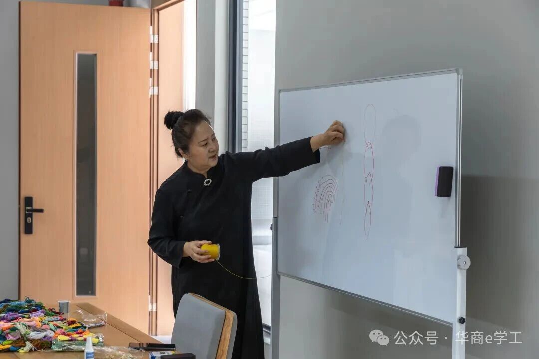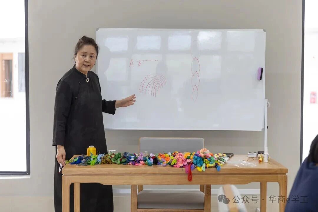 在 “溯源针线” 模块中,李宏复教授介绍了刺绣的发展历史和丰富种类,展示了刺绣文化的源远流长。通过从懵懂到流畅的练习,学生在一针一线中深刻领悟了中国刺绣美学的独特魅力,掌握了中国刺绣的四种针法。