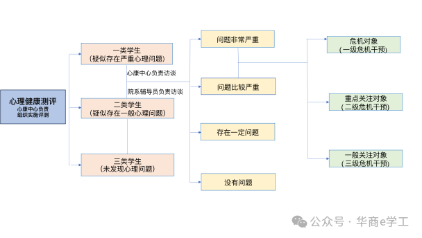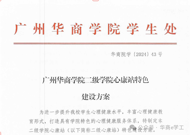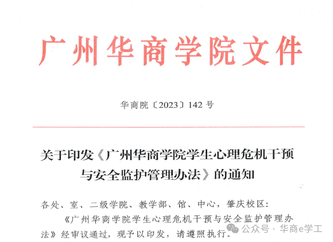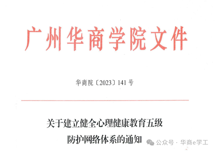 2007年以来,学校陆续出台了《心理健康教育与辅导中心工作职责》《心理咨询保密制度》《学生心理档案管理制度》《广东财经大学华商学院心理健康教育五级防护网络体系》《学生心理危机干预与安全监护管理办法》《关于心理问题学生复学补充说明》《广州华商学院心理问题学生复学评估制度(试行)》等工作制度。