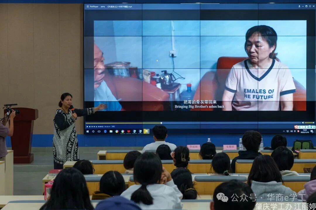 2025年11月18日18:30-21:00,在广州华商学院肇庆校区8号楼108教室,《失落故土》试映会温情启幕。嘉宾曹丽丽老师与影片主创团队齐聚现场,共同开启这场关于“故土与归属”的光影对话。学工办李宝恒老师主持了本次活动