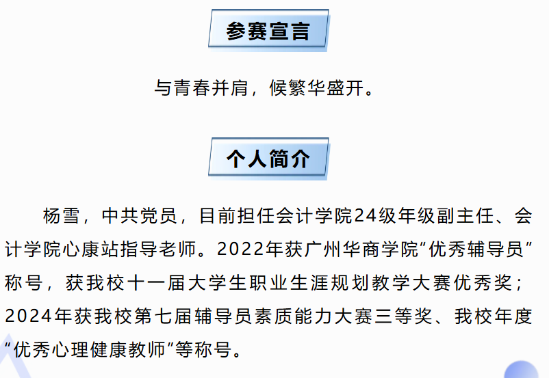 为深入实施立德树人根本任务,深化新时代高校辅导员队伍建设改革,紧扣以赛促学强本领、以赛促建聚合力为导向,持续夯实我校辅导员的理论功底、锤炼育人能力、精进专业水平,着力锻造一支政治过硬、作风优良、业务精湛的学生工作骨干队伍,全面提升学校思想政治教育工作质量,广州华商学院将于2025年12月18日举办“华商二十正青春,辅路引航铸匠心”第八届辅导员素质能力大赛。