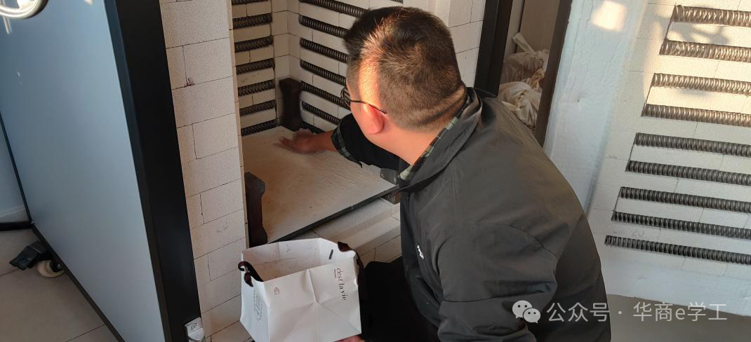 郭步老师带领同学们将上釉完成的作品小心地放入窑炉,调整摆放位置,确保每件作品都能均匀受热。 随着窑温逐渐升高,釉料开始发生化学变化,颜色和质感逐渐显现。整个烧制过程需要精确控制升温曲线、保温时间和降温速度,任何一个环节的失误都可能导致作品失败。郭老师全程监控窑炉状况,并向同学们讲解窑变原理和烧制技巧。