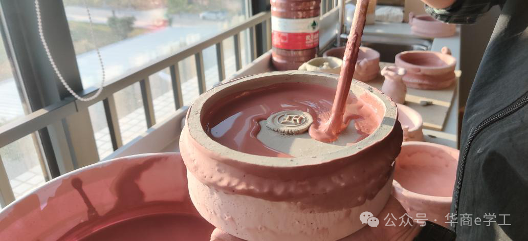 12月17日至18日,陶艺工作室迎来了烧窑的重要时刻。作品进入了最为关键的上釉阶段。釉料的选择、浓度的调配、施釉的手法,都直接影响最终成品的色彩和质感。郭老师向同学们展示了不同釉料的特点和效果,并指导大家根据作品的设计意图选择合适的釉料。