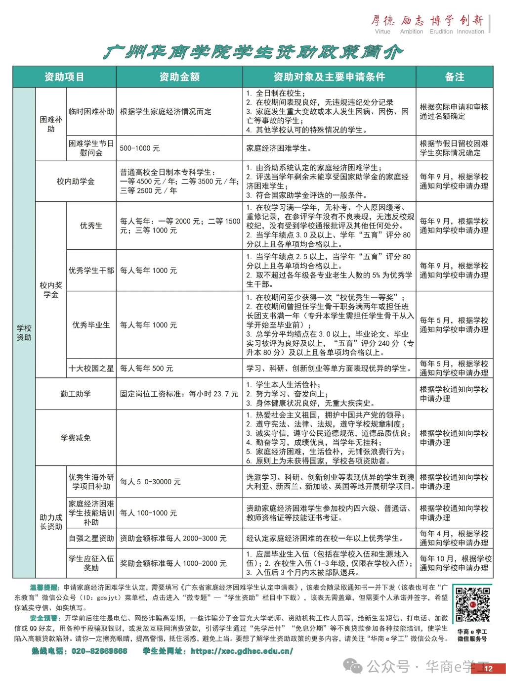 研究制定并出台了《广州华商学院家庭经济困难学生认定办法》等10余项学生资助管理制度。这些办法共同构成了系统、全面的“奖、助、贷、勤、补、免”六位一体资助政策体系,实现了资助工作各环节的有章可循、有据可依,为提升资助工作的规范化、科学化和精准化水平奠定了坚实的制度基础。