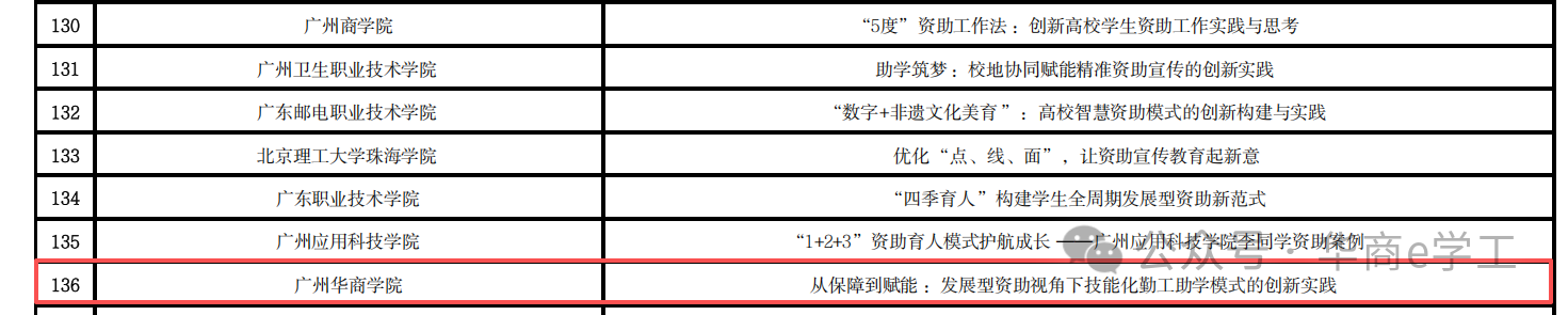 近日,根据《广东省教育厅关于公布2025年度广东省学生资助典型的通知》(粤教助函〔2025〕5号),2025年度广东省学生资助典型名单正式公布。我校李师老师荣获2025年度广东省学生资助者典型,我校资助工作案例——《从保障到赋能:发展型资助视角下技能化勤工助学模式的创新实践》获2025年度广东省学生资助工作案例典型。