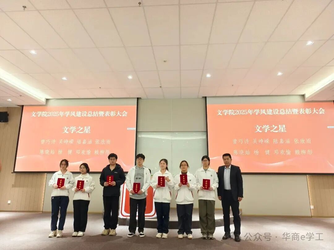 12月30日,文学院在肇庆校区16号楼212会议室召开2025年学风建设总结暨表彰大会。文学院党委副书记郭堪通、学工办主任王桂华、副主任苏子金,团委书记王怡荻,22级年级主任姚婉雯、23级年级主任陈霞以及辅导员和学生代表共同参会。大会旨在总结年度学风建设成果,表彰先进典型,系统部署下一阶段工作。