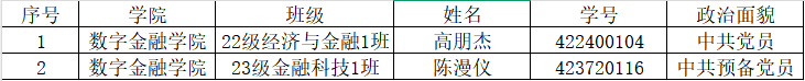 根据广州华商学院《关于做好2025年广州华商学院国家奖助学金工作的通知》相关文件精神,我院秉承公平、公正、公开的原则,严格按照国家奖学金评审程序,经个人自荐,资格审查,学院评审委员会讨论与评审,拟推选高朋杰、陈漫仪同学为数字金融学院2025年国家奖学金候选人,现予公示。